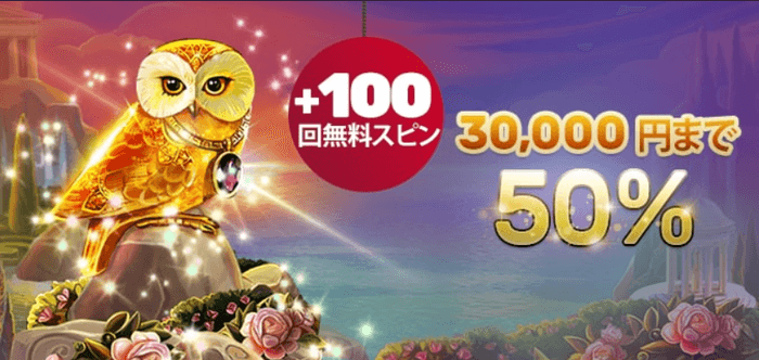 初回だけではなく2回目の入金の際も、最大2万4000円の50%ボーナス&フリースピン50回分をウェルカムボーナスとして受け取ることができます。
