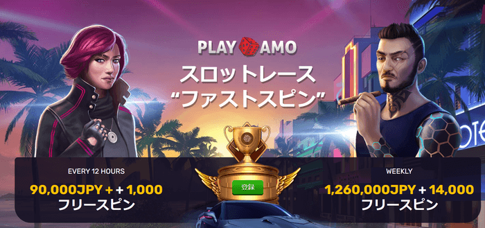 なお、ファストスピンは同時に1週間単位のレースも開催されており、こちらは126万円のボーナス及び1万4000回のフリースピンが用意されています。