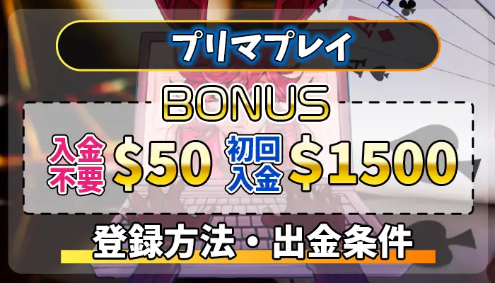 プリマプレイの【50ドル】入金不要ボーナスの詳細情報プロモーション画像