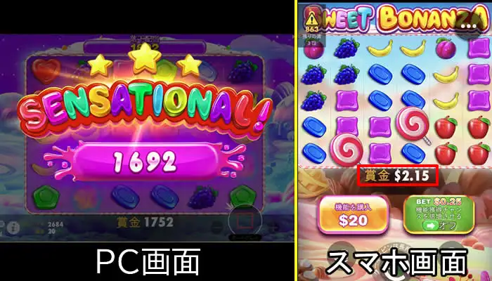 Sweet Bonanzaに限らずpragmatic play社のビデオスロットは、ボーナス購入を活用することをおすすめします。
