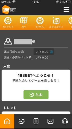 通常、モバイルアプリになるとプレイできるゲームがかなり制限されてしまいますが、188betは麻雀以外すべてプレイ可能。この点は非常に嬉しいですね。