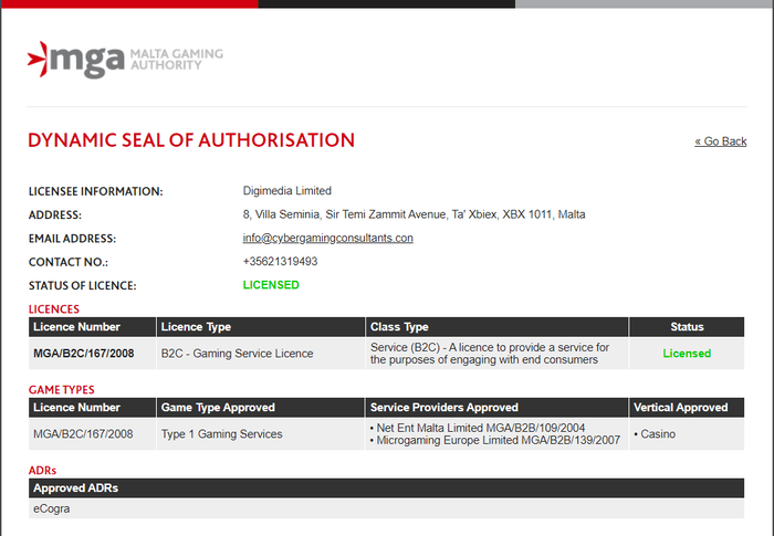 ロイヤルベガスカジノはマルタ共和国のライセンスとは別に、eCOGRAによる第三者認証も受けています。