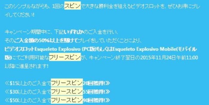 キャンペーンメールで「〇〇ドル以上の入金で〇〇回のスピンクレジット」という内容が届き、入金金額に応じて付与されることになります。