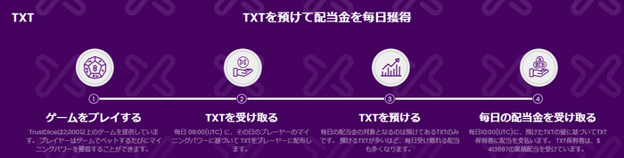 トラストダイスではゲームでベットを行うと、サイト内独自の仮想通貨であるTXTというコインをマイニングすることができます。