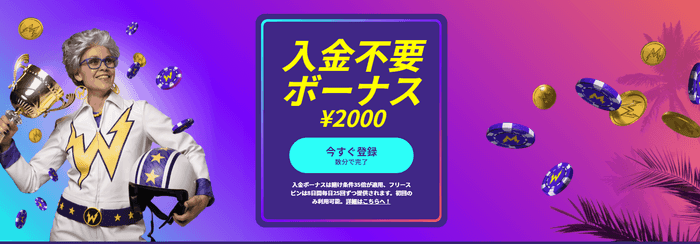 ワイルズカジノに登録するとそれだけですべてのプレイヤーが2000円分の登録ボーナスを貰えます。