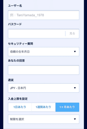 入金上限については、1日、1週間、1か月の期間から設定することができます。