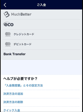 すると入金画面が開き、利用したい入金方法の選択を求められます。