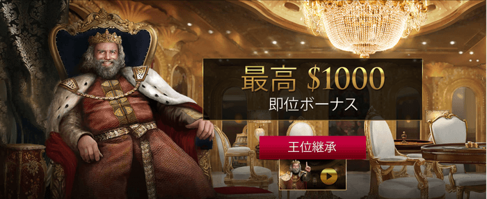 「即位ボーナス」と題して、最大1000ドルまでの100%ボーナスを用意しています。