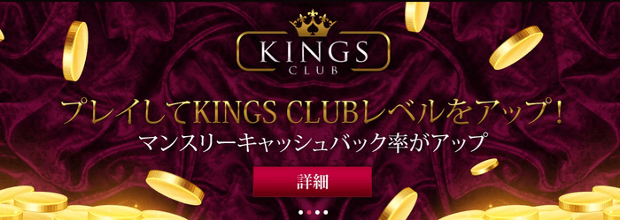 まずは100ドル以上を入金して、早速キングスクラブに入会しましょう。