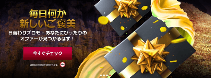 日替わりプロモーションの内容は、入金ボーナスだったり、フリースピンだったりと様々です。