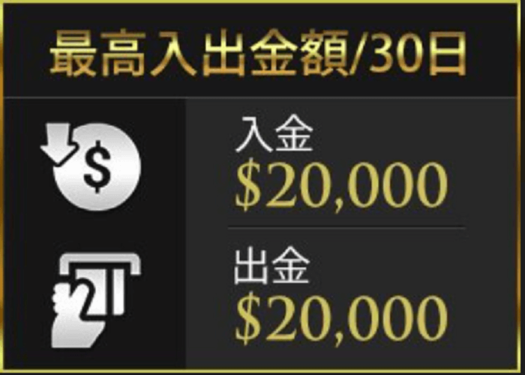 ウィニングキングスカジノでは1か月間に入出金それぞれ2万ドルまでしか行うことができません。